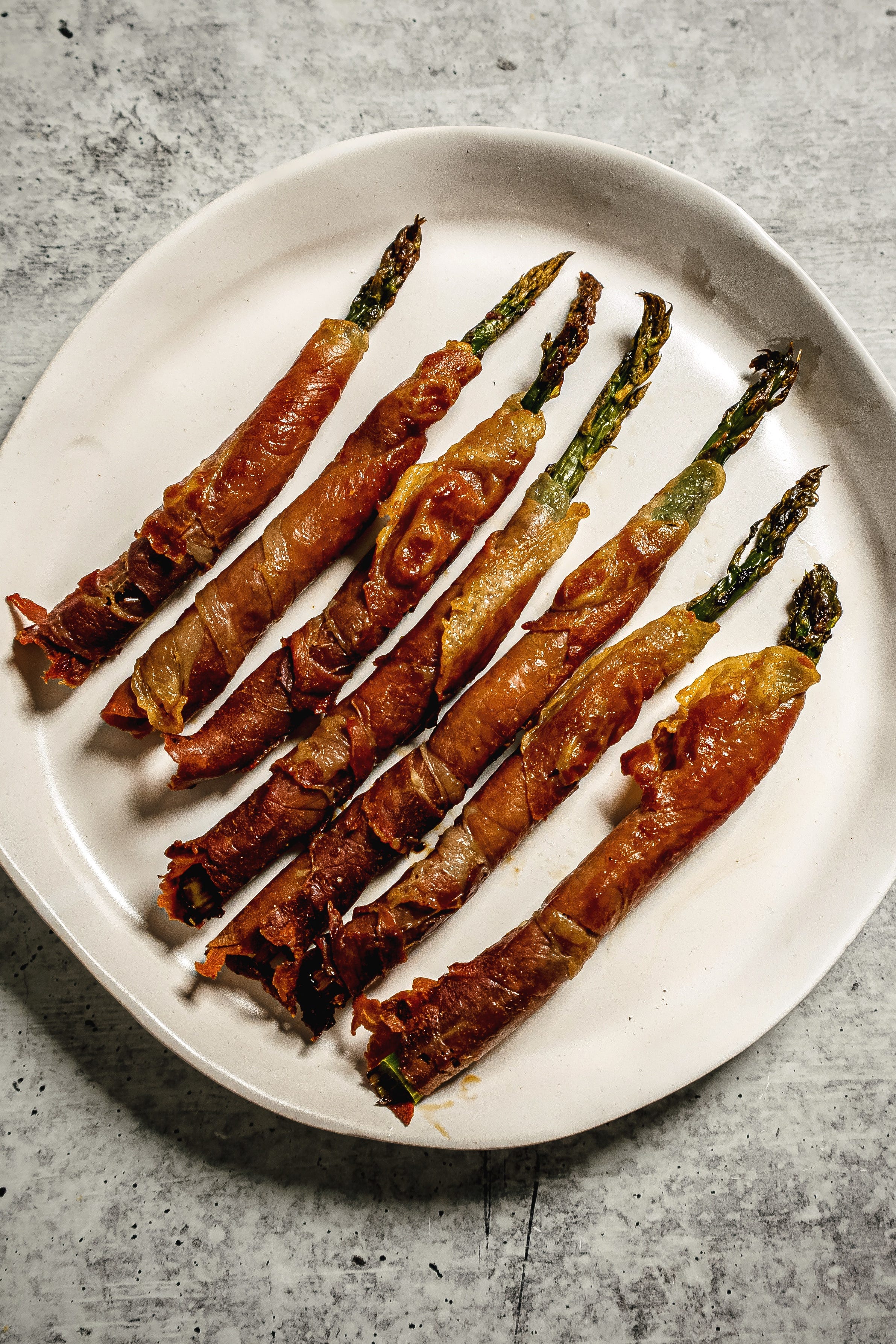 Air fry until the prosciutto on the outside of the asparagus has become golden brown and crispy (~8-10 min) flipping half way in between.